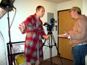 Filming started at 6:30am this morning. Kevin and Nate shot several scenes from Episode 2. Then it was Sarah’s turn as her character gets introduced in scenes from this episode. After lunch, things moved to the bedroom to shoot the opening scene.